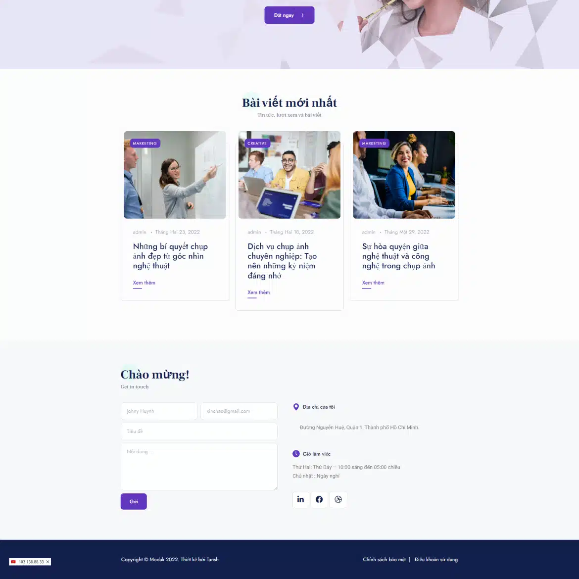 Đánh giá và nhận xét cho giao diện Modak - Dịch vụ nhiếp ảnh