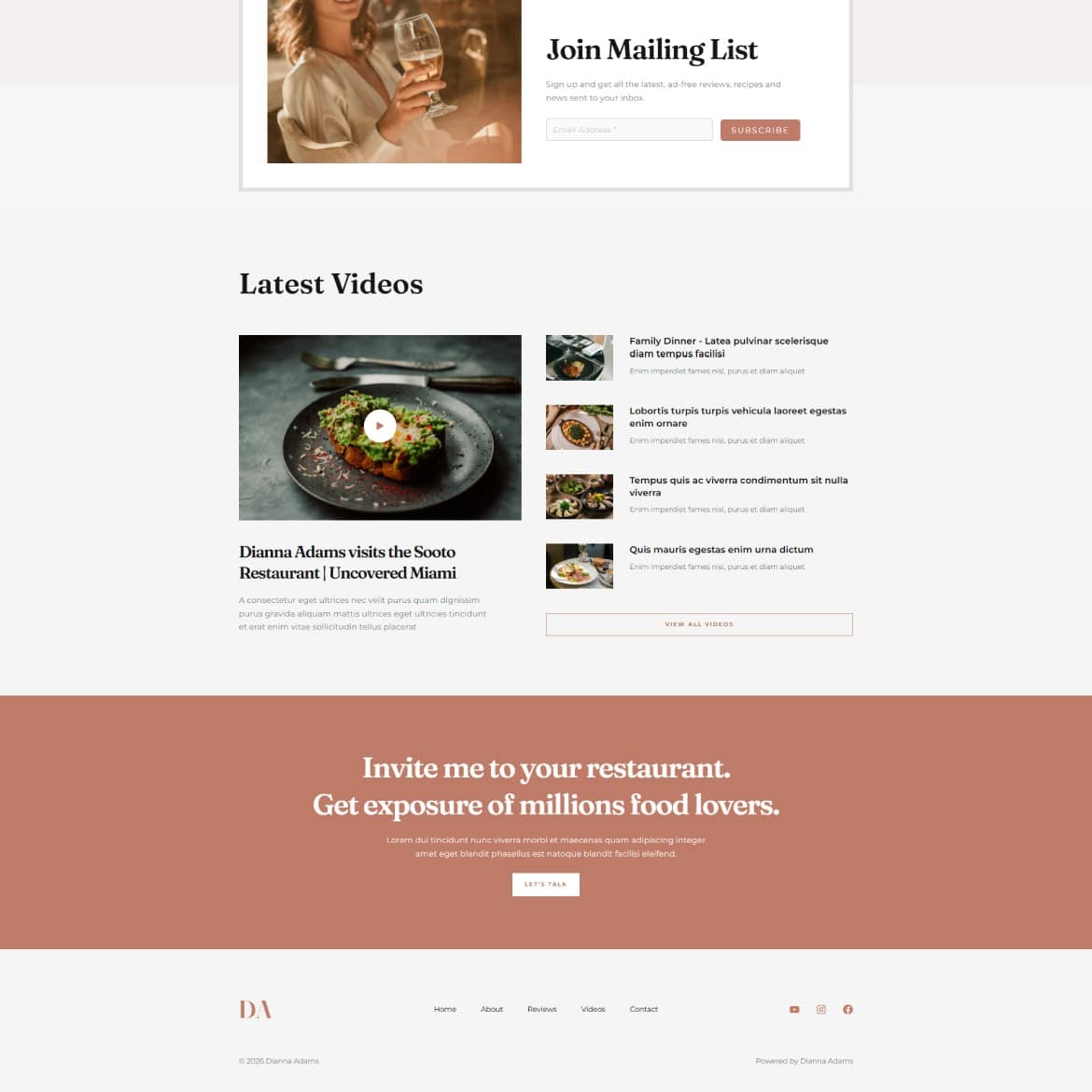 Đánh giá và nhận xét cho giao diện Dianna Adams - Blogger và người có ảnh hưởng trong lĩnh vực ẩm thực