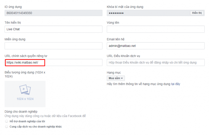 3. Thông tin duy nhất mà các bạn bắt buộc phải điền trong phần này là URL chính sách quyền riêng tư (nên điền URL website của bạn). Những mục khác các bạn có thể bỏ qua.